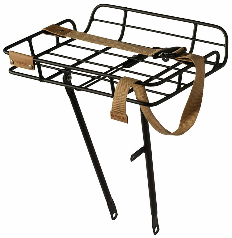 Le Basil Portland Front Carrier High est un élégant porte-roue avant en aluminium de style vintage, adapté au sac Portland. En plus du sac Portland, d’autres sacs de dimensions similaires peuvent également être placés sur ce support frontal. Une sangle amovible est fixée au support avant pour vous aider à maintenir votre sac ou votre panier en place.