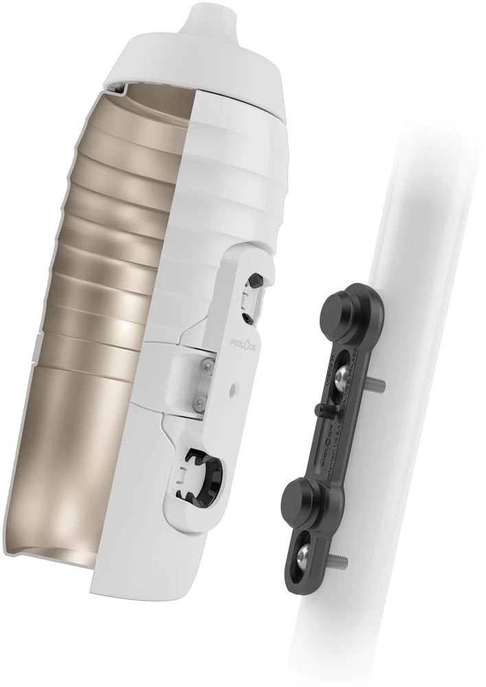Avec le système TWIST, la bouteille KEEGO peut désormais être fixée au vélo sans porte-bouteille conventionnel, mais grâce à la technologie magnétique-mécanique innovante FIDLOCK. Le bidon est solidement fixé au cadre grâce à la technologie « belt-only », constituée d’une ceinture flexible et résistante, qui se visse à un connecteur spécial et qui est compatible avec toutes les bases TWIST.