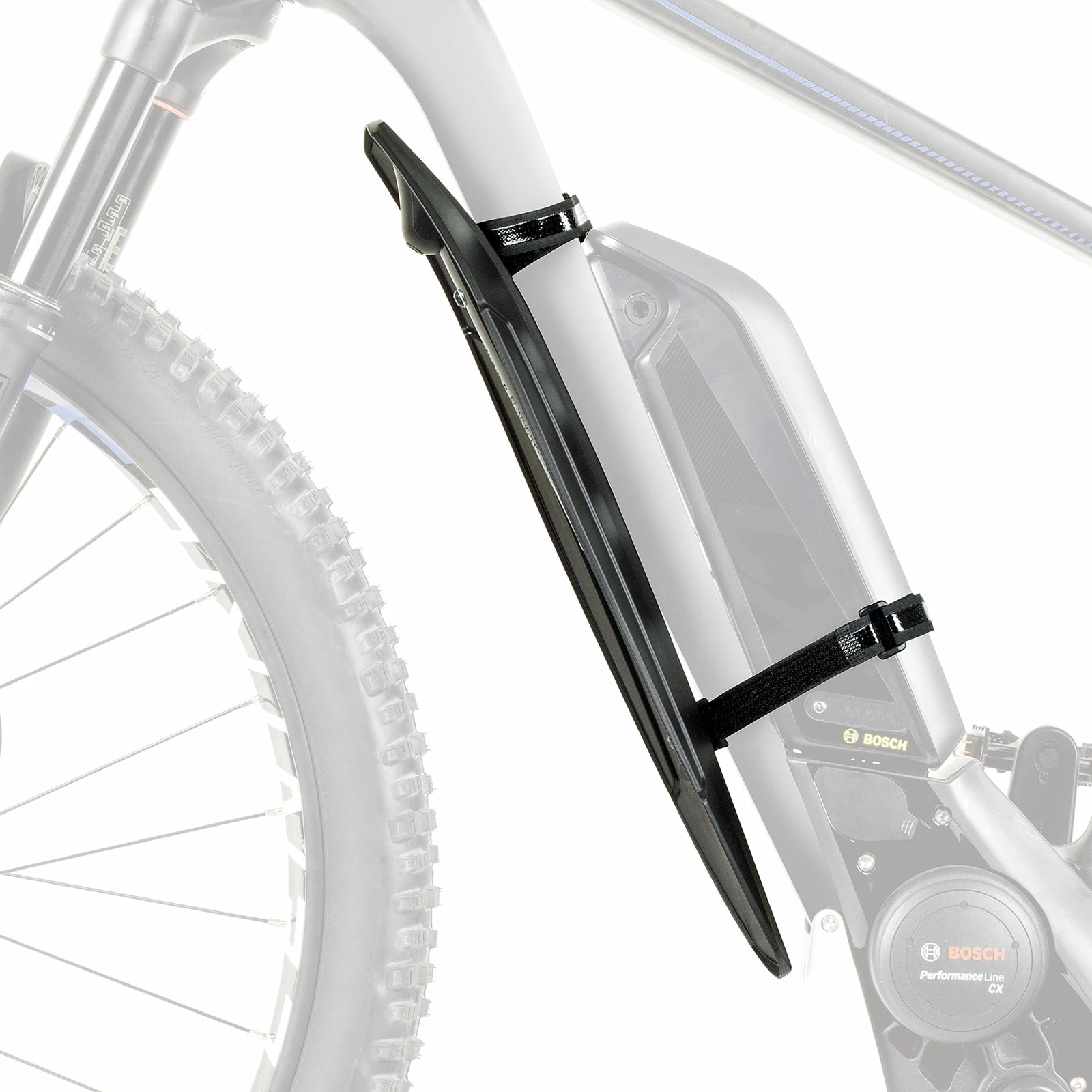 Le X-GUARD est un garde-boue universel pour toutes les tailles de roues, qui se fixe au tube diagonal à l’aide de deux sangles. Il offre une protection totale contre la boue, en particulier pour les vélos à pneus plus et les fat bikes.